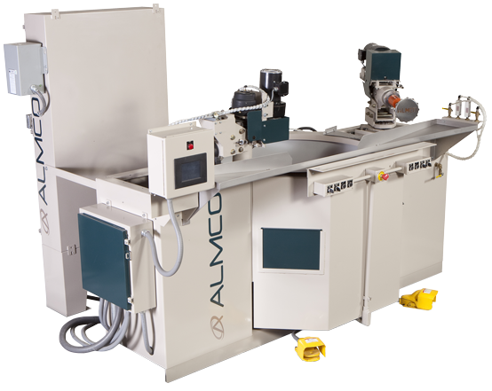 Almco是美國一家70多年歷史的機(jī)械零件表面處理公司,有著深厚的技術(shù)積累。服務(wù)領(lǐng)域集去毛刺,打磨,清洗,光飾于一體。適用產(chǎn)品從小尺寸機(jī)械零部件到最大的飛機(jī)發(fā)動(dòng)機(jī)零部件。客戶主要集中在波音,普惠等一流飛機(jī)零部件生產(chǎn)企業(yè)。本次以其最具代表性的旋轉(zhuǎn)軸精密去毛刺設(shè)備(Spindle Finishing Machine)為例介紹如下該機(jī)型主要用于高精度產(chǎn)品的去毛刺,適合大型不見貨多種小型零件的組合件,磨料磨削液已高達(dá)1000ft/min的限速的旋轉(zhuǎn)移動(dòng),旋轉(zhuǎn)所產(chǎn)生的離心力帶動(dòng)介質(zhì)轉(zhuǎn)動(dòng)從而形成一個(gè)“砂輪”,零件緩慢旋轉(zhuǎn)確保能對(duì)所有表面進(jìn)行修邊和去毛刺。此設(shè)備用于齒輪,曲軸,軸承套,花鍵軸,泵轉(zhuǎn)子,噴氣發(fā)動(dòng)機(jī)葉片等